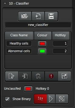 Get unbiased and reproducible classification results even in situations where thresholding or filtering is not suitable. Use the intelligent classifier to group your results and display them in a histogram. The classifier can be trained with a training data set, then saved and applied to new data sets. The new objects will be divided into your predefined classes with a support vector machine.