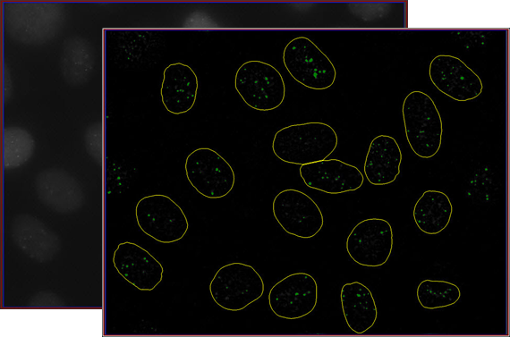 With multi-channel analysis, even complicated fluorescent experiments can be evaluated with ease. Create separate analysis channels for each fluorescent marker and assign an individual workflow to each. Then simply run an analysis of all aspects of your sample at the same time.