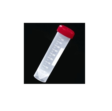 50mL centrifuge tube, polypropylene (PP) with red screwcap (HDPE), self-standing and printed graduations.