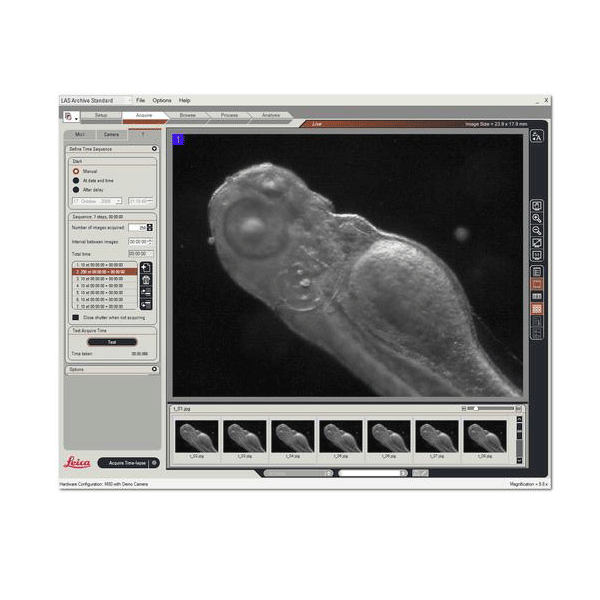 Module LAS MultiTime (tùy chọn thêm) là công cụ trực quan được tích hợp với các kính hiển vi và camera kỹ thuật số của Leica, tự động thu ảnh ở thời diểm được đặt trước như sau hàng giây, phút, giờ hoặc ngày.
