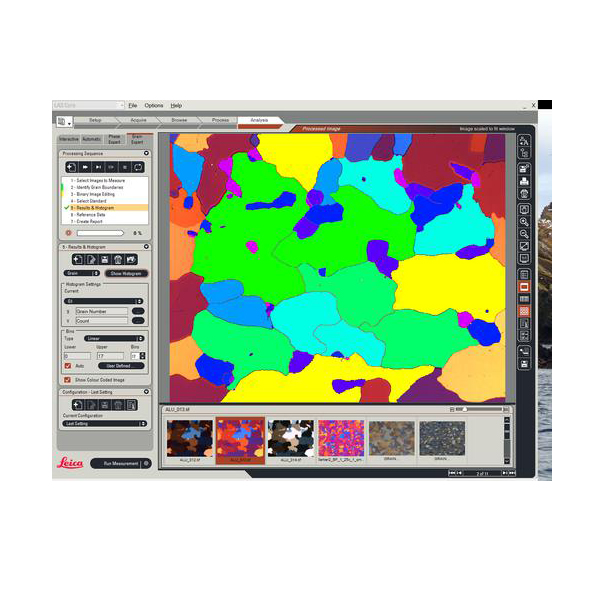 Các hình ảnh hiển vi được cung cấp bởi Leica Application Suite (LAS) với những tiến bộ mới nhất trong hiển vi tự động, tính toán và phân tích ảnh kỹ thuật số. Hệ thống xử lý ảnh phức tạp thực hiện thao tác nhận dạng biên giới hạt một cách nhanh chóng và cho kết quả chỉ chỉ trong vòng vài giây.