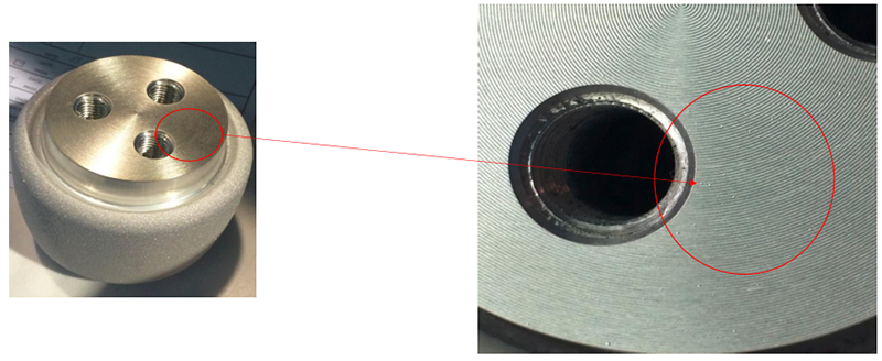 Linh kiện “Insert” có vết phồng rộp trên bề mặt, khách hàng muốn tìm hiểu xem vết phồng rộp bắt dầu từ lớp nguyên vật liệu nào của linh kiện.