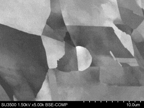 Hình 3 cho thấy kết quả quan sát mặt cắt ngang của tấm đồng được chế tạo bằng hệ thống phay ion IM4000. Độ tương phản tinh thể của cấu trúc kim loại được quan sát thấy trong hình ảnh có độ phóng đại thấp (Hình 3a), và các hạt tinh thể có hình dạng và kích thước khác nhau có chiều rộng khoảng 100nm được hiển thị bằng mũi tên được quan sát rõ ràng ở độ phóng đại cao hơn (Hình 3b).