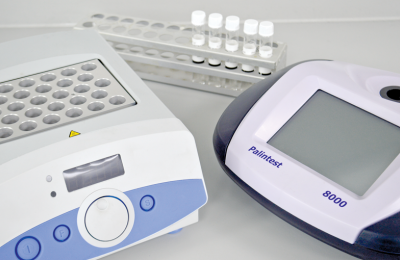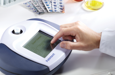 Sử dụng thiết bị kết hợp với một khối gia nhiệt để tiến hành phân tích sử dụng các ống thuốc thử dạng lỏng của Palintest