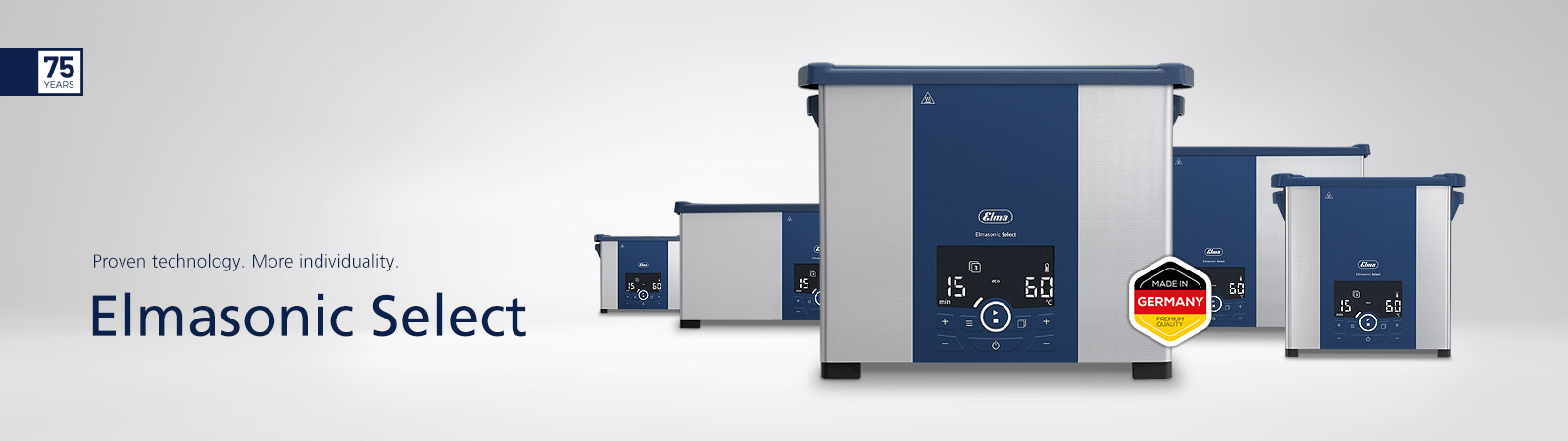 Elma Schmidbauer GmbH là một trong những công ty hàng đầu tại Đức, chuyên về các thiết bị làm sạch bằng sóng siêu âm và hơi nước. Bể rửa siêu âm Select là một dòng bể rửa nổi bật của Elma, giúp loại bỏ các mảng bám, keo dính, đánh bóng đồ trang sức, hòa tan, phân tán mẫu, làm sạch dụng cụ thí nghiệm,...một cách hiệu quả, an toàn và nhanh chóng với tần số 37kHz và 5 chế độ siêu âm sweep/degas/eco/pulse/dynamic.