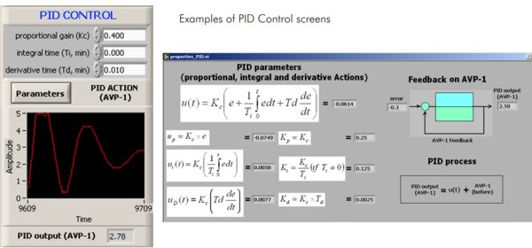 Năng suất của tất cả các cơ cấu chấp hành có thể được thay đổi ở bất kỳ thời điểm nào từ bàn phím máy tính, cho phép phân tích các đồ thị và phản hồi của