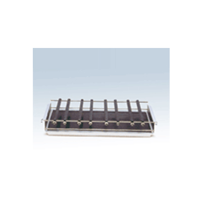 Một số thanh kẹp giữ các bình thủy tinh hoặc ống trên tấm cao su chống trượt. Thích hợp cho nhiều kích cỡ khác nhau của bình đáy phẳng.