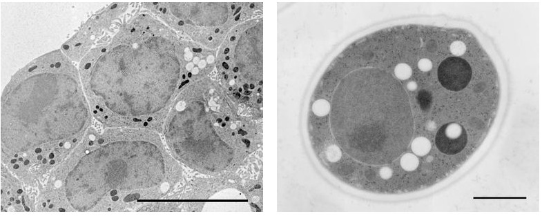 Tiến hành cắt lát siêu mỏng với máy cắt Leica EM UC6 và xử lý sau nhuộm bằng Leica EM AC20 trong 40 phút với uranyl acetate tại 20oC và trong 10 phút với lead citrate tại 20oC. Cuối cùng quan sát bằng kính hiển vi điện tử truyền qua (TEM) tại thế gia tốc 80kV sử dụng công nghệ đĩa ảnh.