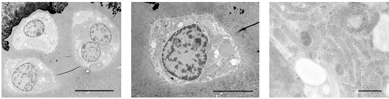 Tiến hành cắt lát siêu mỏng với máy cắt Leica EM UC6 và xử lý sau nhuộm bằng Leica EM AC20 trong 40 phút với uranyl acetate tại 20oC và trong 10 phút với lead citrate tại 20oC.