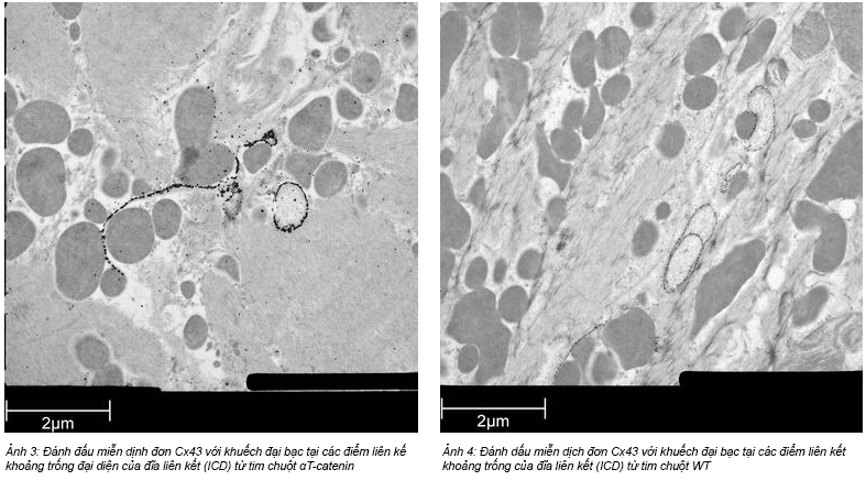 Mô tim của chuột wild-type (WT) và αT-catenin KO (KO) được cắt lát, ngâm trong 20% (w/v) BSA và kết động lập tức bằng máy kết đông áp suất cao (Leica EM PACT). Tiếp theo quá trình thay thế kết đông được thực hiện bằng Leica EM AFS trong acetone khô chứa 2% ddH2O và 0.1% glutaraldehyde trong 4 ngày như sau: