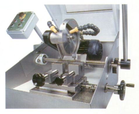 Tốc độ của lưỡi cắt có thể được điều chỉnh liên tục ( dải tốc độ từ 0-3000 rpm) và quá trình chuyển theo phương ngang của trục đỡ được kiểm soát bằng thước trắc vi nhờ vậy thiết bị có thể cắt và vát mỏng loại mẫu với vật liệu bất kỳ.
