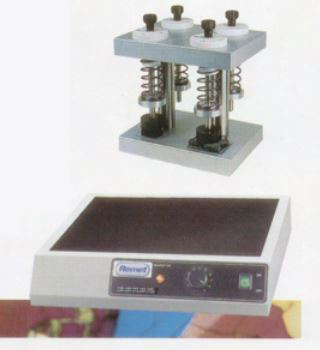 Sau khi bề măt mẫu đạt được độ phẳng cần thiết, dán bề mặt đã được mài thô lên một lam kính. Quá trình dán phải cực kì chính xác và các bọt khí phải được loại bỏ hoàn toàn nhằm đảm bảo sự tiếp xúc tốt nhất giữa mẫu và lam kính. Việc lựa chọn loại keo thích hợp là vô cùng quan trọng để đảm bảo độ bám dinh cần thiết. Thiết bị sử dụng được thiết kế với kết cấu chắc chắn và nhỏ gọn bao gồm 4 lò xo ép. Cho phép dán mẫu bề mặt song song và tối thiểu lượng keo dán cần sử dụng. Bếp gia nhiệt điều chỉnh nhiệt độ nhằm đẩy nhanh quá trình liên kết. |