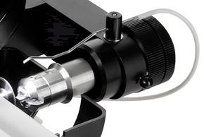 Được tích hợp một kính hiển vi sôi nổi cho phép xác định chính xác và dễ dàng chuẩn bị mẫu mà hầu như không nhìn thấy được. Với cánh tay dạng trục xoay mẫu có thể được quan sát trực tiếp ở một góc giữa 0º - 60º hay 90º so với mặt trước để xác định khoảng cách với bộ lưới thị kính.