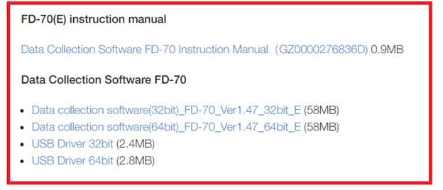 Một trong những lý do chính mà USB có chứa FD-70 DAS được cung cấp cùng là để tạo điều kiện truy cập dễ dàng hơn và nhanh hơn cho những khách hàng muốn kết nối máy đo với PC. Việc này giúp khách hàng không phải đăng ký trên trang web trước khi tải xuống phần mềm.