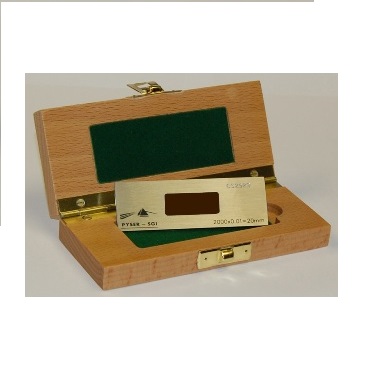 Thước chia vạch giống như hình ảnh mạ chrome chân không trên lam kính chữ nhật, với tấm phủ lam được gắn ở trên cùng. Được định vị trên một bản kính thép không gỉ trong hộp gỗ mài nhẵn. Giấy chứng nhận hiệu chuẩn quốc tế theo tiêu chuẩn ISO.