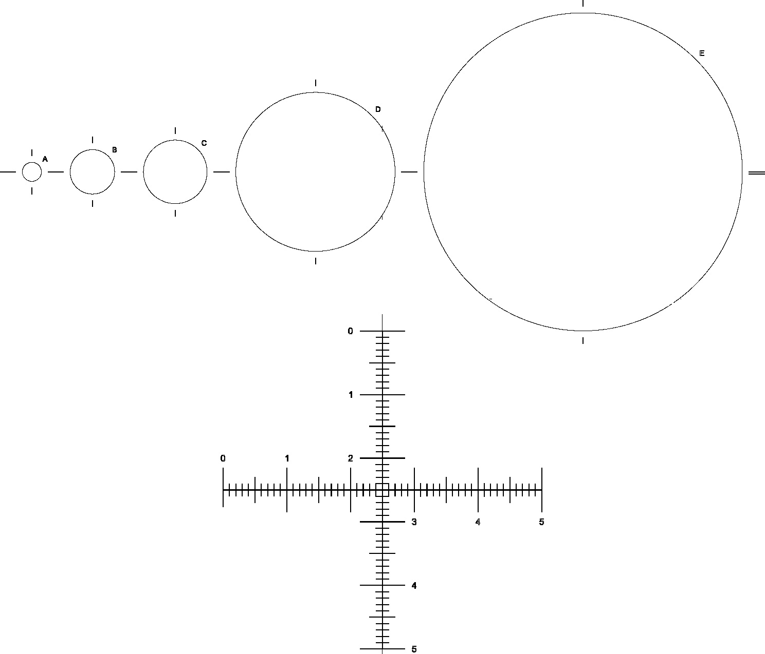 Thước chuẩn máy đo độ cứng Brinell với thước chia vạch và hình tròn.