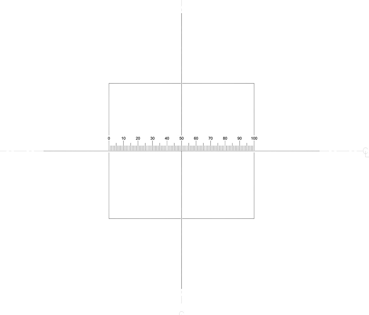 Trắc vi thị kính với thước chia độ dài 10mm nằm ngang, độ chia 100 x 0.1mm (100µ), hình chữ thập được định vị trung tâm và hình vuông 10mm.