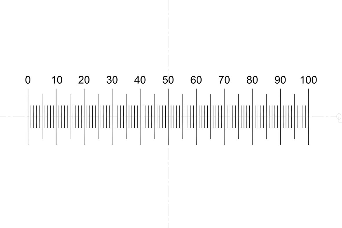 Trắc vi thị kính với thước chia vạch nằm ngang dài 10mm, 100 vạch chia x 0.1mm. Khi được sử dụng với 1 vật kính x10 mỗi vạch chia sẽ tương ứng 10 microns trên mẫu vật. Bằng cách lấy giá trị mỗi vạch chia của thước trắc vi chia cho độ phóng đại của vật kính, kết quả tìm được chính là giá trị mỗi vạch chia hiển thị trên bàn soi.