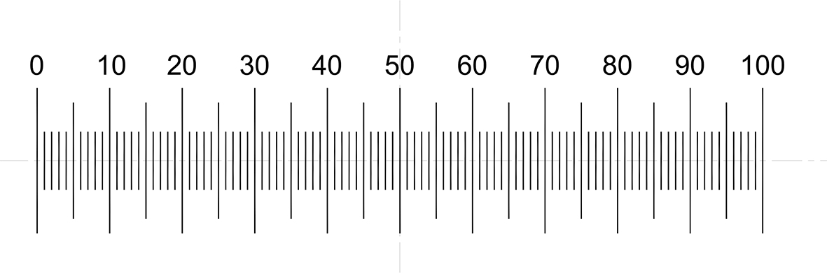 Trắc vi thị kính với thước chia vạch nằm ngang dài 1.0mm, 100 vạch chia x 0.01mm. Khi được sử dụng với 1 vật kính x10 mỗi vạch chia sẽ tương ứng 1 micron trên mẫu vật. Bằng cách lấy giá trị mỗi vạch chia của thước trắc vi chia cho độ phóng đại của vật kính, kết quả tìm được chính là giá trị mỗi vạch chia hiển thị trên bàn soi.