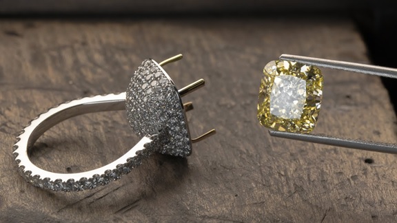 Viên đá chính của chiếc nhẫn là viên kim cương màu vàng 5,53 carat (được GIA chứng nhận) trị giá 62.000 USD. Phần vòm bên trong được làm bằng vàng vàng 24K để tôn lên màu vàng của viên kim cương. Phần vòm bên ngoài được làm bằng vàng trắng 18K và được gắn bằng kim cương (1,68 carat). Vòng nhẫn cũng được làm bằng vàng trắng 18K và đính kim cương (0,65 carat).
