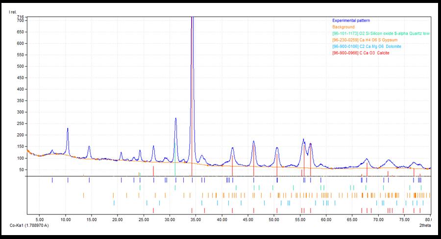 Hình 1: Mẫu địa chất được phân tích trong khoảng thời gian 10 phút bằng model ARL EQUINOX 1000 với phép ghi sắc Graphite