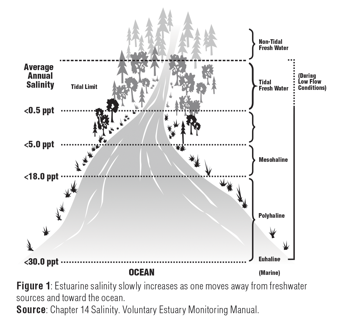 Xác định độ mặn là một phép đo quan trọng trong nước biển hay ở các cửa sông nơi mà nước ngọt từ các con sông, dòng suối hòa trộn với nước biển, kể từ khi các sinh vật thủy sinh có khả năng thay đổi nhằm thích ứng và tồn tại dưới các điều kiện độ mặn không giống nhau. Sinh vật nước mặn tồn tại ở độ mặn lên tới 40 ppt, tuy nhiên nhiều sinh vật nước ngọt không thể sống khi độ mặn vượt quá 1 ppt. (2)