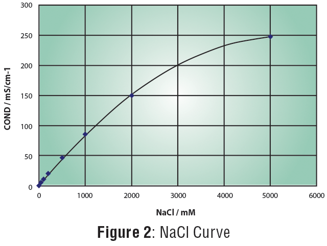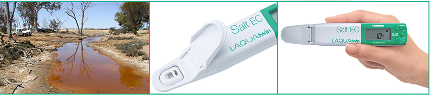 Bút đo độ mặn bỏ túi LAQUAtwin Salt 11 xác định độ dẫn của mẫu đo sau đó chuyển thành giá trị độ mặn dựa trên đường chuẩn độ mặn được lựa chọn. Cảm biến với hai đầu kim loại titan phủ bạch kim đen chống ăn mòn và cảm biến nhiệt độ để thực hiện phép đo chính xác. Bút đo được lập trình với hai đường chuẩn -nước biển và natri clorua (NaCl). Trước đây dựa theo phương trình PSS-78 và sau này theo phương trình trong Hình 2.