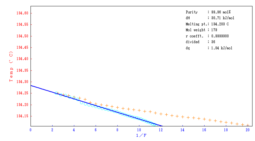 Sử dụng phương pháp phân tích nhiệt lượng quét vi sai (DSC), có thể xác định được độ tinh khiết của vật liệu dựa trên nhiệt độ nóng chảy, nhiệt nóng chảy và tỷ lệ nóng chảy ở tất cả các nhiệt độ. Trong trường hợp này, một vật liệu có độ tinh khiết cao sẽ được sử dụng làm tham chiếu và người ta sẽ thực hiện hiệu chuẩn nhiệt độ từ độ dốc của đỉnh nóng chảy trên đồ thị.