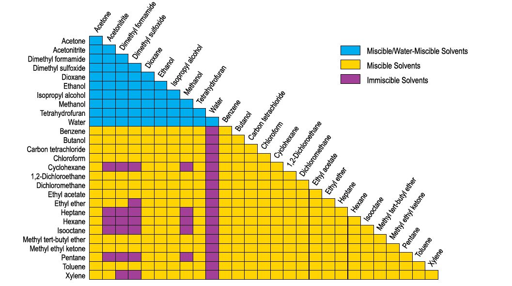 HÌnh 1: Độ trộn lẫn và hòa tan của dung môi |