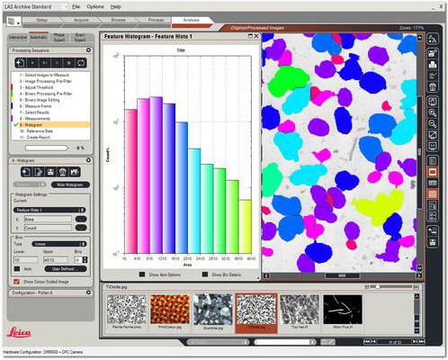 Phần mềm phân tích ảnh hiển vi Leica LAS Image Analysis hướng dẫn quy trình thu nhận, xác định và đo đạc mẫu. Các loại mẫu như bột và hạt được đo đạc dễ dàng thông qua thang đo với khoảng rộng.